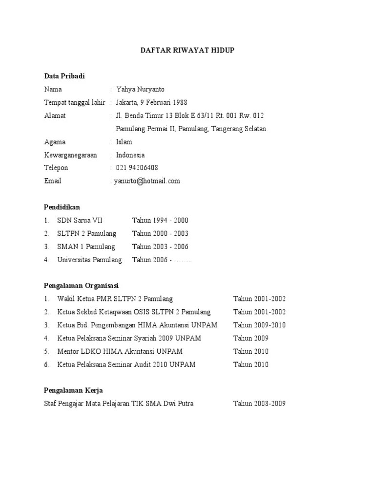 Foto Daftar Riwayat Hidup : Daftar Riwayat Hidup Pengertian Hal Yang Penting Dicantum - Maybe you would like to learn more about one of these?