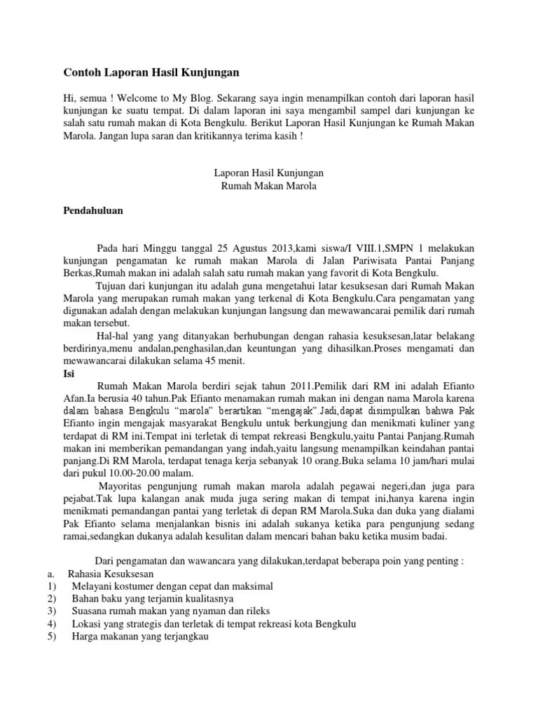 Posted on may 8, 2011 by qorirahelmumtahanah. Jangan lupa diprint dengan kertas minimal 70 gsm dan tinta yang jelas dan rapi karena akan mempengaruhi penilaian hrd terhadap tekad kita untuk melamar. Harga pokok produksi abstrak laporan tugas akhir ini disusun oleh rahman adam hidayat, 120103100048, jurusan akuntansi, pendidikan ahli administrasi perusahaan (paap) fakultas ekonomi dan bisnis universitas padjajaran. Hal ini menyebabkan sungai menjadi tercemar dan tersumbat. Secara umum, teks laporan percobaan terdiri dari 5 struktur. Sistem pembayaran dilakukan dengan cara transfer melalui nomor rekening pabrik kerupuk laksana. Teks laporan hasil observasi adalah teks yang berisi informasi serangkaian hasil pengamatan suatu objek. Teks laporan observasi sendiri adalah sebuah teks yang digunakan untuk menjelaskan segala sesuatu tentang benda yang telah diamati. Usaha ini terdapat di pondok labu, jakarta selatan. pabrik tahu sentra pembuatan tahu desa teguhan sragen. Contoh teks laporan hasil observasi tentang lingkungan. Tidak lupa kami mengucapkan terima kasih terhadap bantuan dari pihak. Sedangkan, untuk teks hasil observasi memiliki pengertian yaitu isi teks yang menjelaskan suatu informasi baik itu informasi tentang hewan, tanaman, fenomena alam, hasil karya manusia, dan fenomena sosial yang sesuai dengan fakta.
